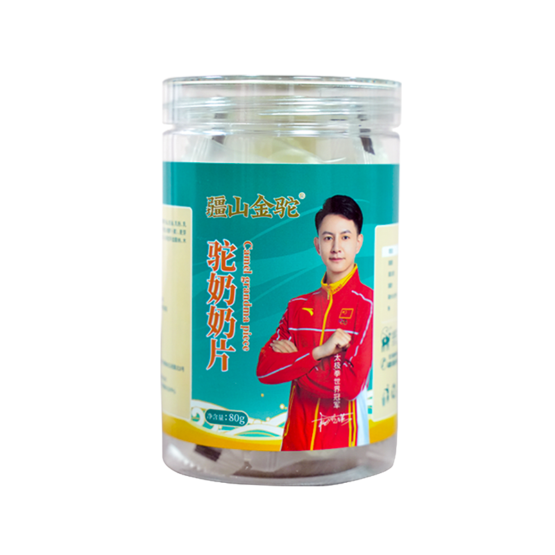 【产品介绍】本品采用新疆唐布拉大草原生鲜驼乳为原料,科学添加多种营养元素,经过净乳、喷雾干燥、除菌的步骤制成奶片。富含不饱和脂肪酸和多种氨基酸、铁、钙、维生素C等营养物质,口感酥脆,奶香四溢。